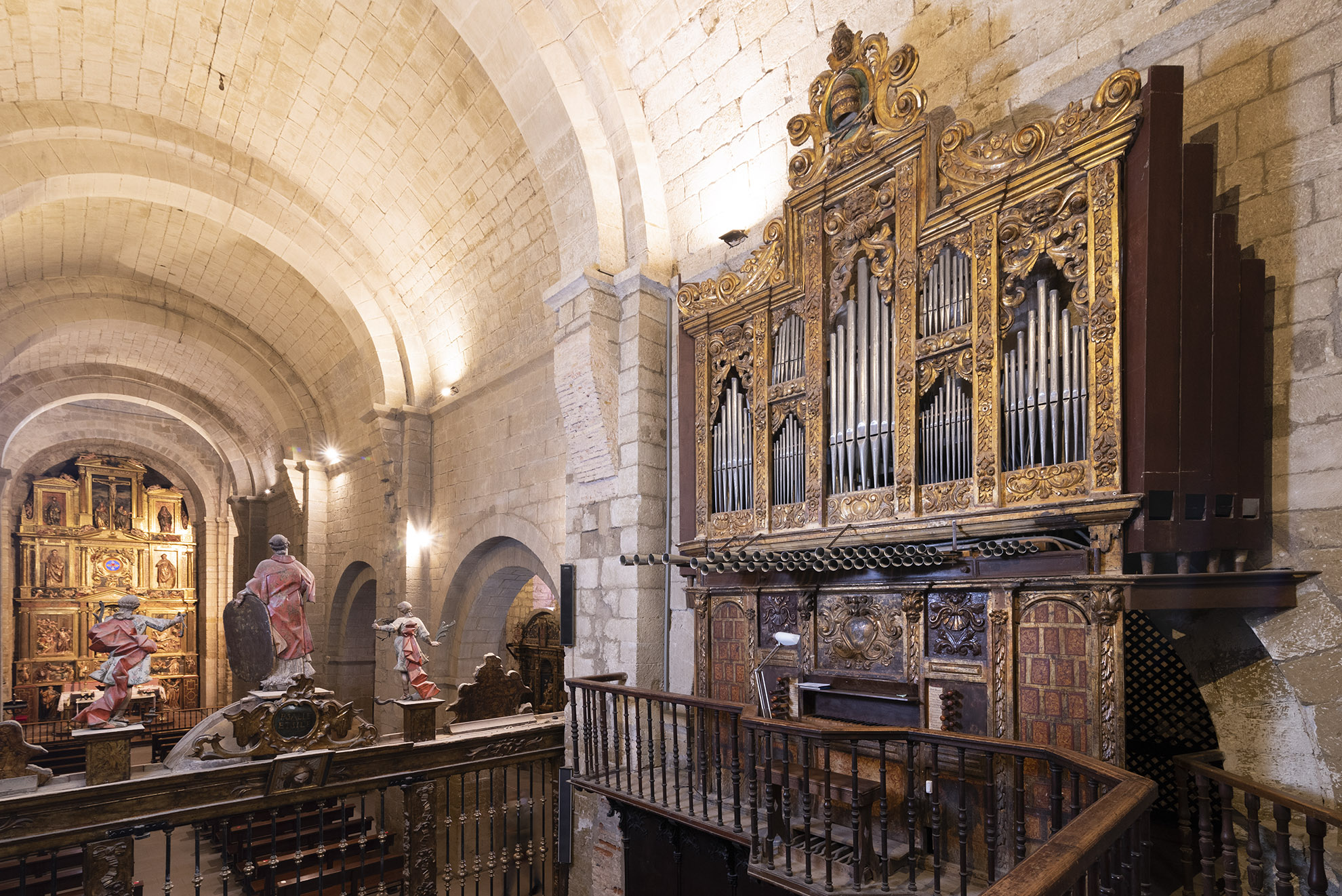 Normal 0 21 MicrosoftInternetExplorer4 Esta iglesia es la única parte conservada de un antiguo conjunto monástico, aunque recientemente se han localizado algunos vestigios arqueológicos del resto. Tiene planta de cruz latina orientada al este. Consta de amplia nave única de dos tramos, crucero muy desarrollado y cabecera de tres ábsides poligonales que disponen de contrafuertes exteriores en los ángulos. Está construida en piedra sillar. La iglesia tuvo tres portadas, de las que hoy solo es practicable la del muro meridional, cobijada por cuatro arquivoltas de medio punto decoradas con distintos motivos seriados (dientes de sierra, puntas de diamante y arquillos de herradura), que apoyan en columnas con los capiteles tallados con elementos vegetales y geométricos. Las puertas que hubo a los pies y en el lado del Evangelio están cegadas actualmente. La de los pies comunicaba la iglesia con las dependencias anejas; es en arco de medio de largas dovelas, resaltada por una moldura decorada con puntas de diamante. En el interior, la nave está dividida en tres tramos por arcos fajones apuntados, que apean en ménsulas sobre molduras escalonadas; se cubre con bóveda de cañón apuntado. En cada uno de los lados de la nave se abren sendos arcosolios en arco apuntado, sin ningún tipo de decoración. Los tres tramos del brazo del crucero lo hacen con bóveda de crucería, que apean en esbeltas columnas adosadas con capiteles esculpidos. Los paramentos de los extremos del crucero presentan rosetones y también hay un vano en el muro oeste de cada uno de los brazos del crucero, en arco apuntado que apea sobre parejas de columnillas decoradas también con capiteles labrados. La cabecera está compuesta por una capilla central de mayor tamaño, de anchura similar a la de la nave, y dos laterales de la anchura de los brazos del crucero, todos ellos con planta poligonal y embocadura en arco apuntado. Las tres capillas cubren con bóveda gallonada resaltada por nervios que apean en columnas con capiteles decorados. En todas las capillas se abren varias ventanas, en arco apuntado y abocinadas, con varias arquivoltas hacia el interior sobre columnillas con decoración esculpida. La decoración de los capiteles es en general de carácter geométrico y vegetal, aunque en las zonas del crucero y la capilla central hay algunos con tallas figurativas, algunas de ellas con un carácter simbólico relacionado con el carácter funerario del templo. Entre ellos destacan los del ábside central, con una representación de san Miguel u otro en el que aparece una cabeza humana atacada por dos animales. El crucero cuenta con cuatro tumbas, bajo parejas de arcosolios en arco apuntado, en el testero de cada brazo, donde están enterrados el fundador y su familia. Las sepulturas presentan un importante conjunto de pintura mural. Estilísticamente, se sitúan dentro del primer gótico de inspiración francesa, o gótico lineal, con policromía brillante y gruesas líneas negras enmarcando las masas de color. La mitad inferior de los muros, ocupada por los arcosolios, está decorada con temas funerarios; los paramentos de la mitad superior del muro, sobre los arcosolios, muestran diversos ciclos narrativos (infancia de Jesús, escenas de la vida de San Juan Bautista, Virgen de la Leche y mujer escribiendo acompañada de judíos), De todo el conjunto, las pinturas más interesantes y mejor conservadas son las del lado de la Epístola, correspondientes a las tumbas de Ximeno y Atho de Foces. Los fondos de los arcosolios quedan divididos horizontalmente en 3 registros, destacando la Crucifixión con apóstoles en la tumba de Ximeno y el alma del difunto elevada por dos ángeles en la tumba de Ato. En el ángulo noroccidental el edificio contaba con una torre, que fue posteriormente sustituida por una espadaña.en el muro oeste de cada uno de los brazos. En el lugar donde estaba situada la torre se conserva, empotrada en el muro, la escalera de caracol que ascendía a ella.