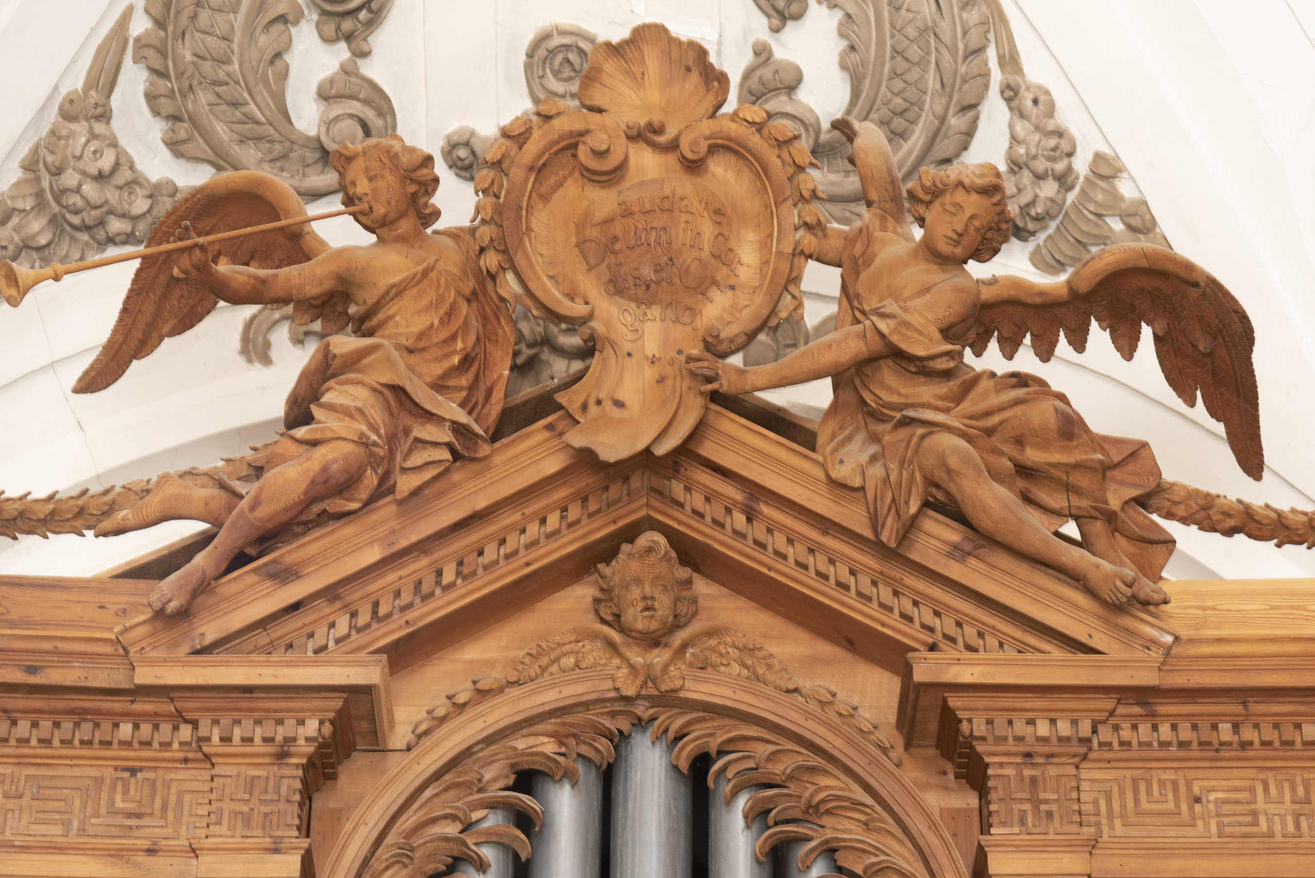 Es un edificio de notables dimensiones que responde a un plan constructivo unitario de carácter renacentista con cierto influjo herreriano, si bien se introducen ya rasgos del primer barroco, sobrio y contenido, combinados con elementos decorativos de tradición mudéjar. El material constructivo predominante es la piedra arenisca de la zona, aunque los dos cuerpos superiores de la torre están realizados en ladrillo. La cabecera es de planta poligonal y se cubre con cúpula muy rebajada que se apoya en solución mixta, de pechinas hacia la nave, y adaptándose al perfil poligonal en el lado opuesto. Se decora con franjas que se unen en el centro con una gran clave decorada a modo de rosetón. A ambos lados del altar se abren dos dependencias cubiertas con cúpula vaída sobre pechinas poco salientes del muro. La sala del lado del evangelio se decora con entrelazos formando en el centro una estrella con el símbolo solar. Al exterior, la cabecera es plana y no se trasdosan las cúpulas, si bien los potentes contrafuertes, con fina decoración de modillones, crean un elegante juego volumétrico. La nave es rectangular y está dividida en tres tramos por medio de arcos fajones que apean en medias columnas adosadas al muro. Se cubre con bóvedas de cañón con lunetos. En el último tramo de la nave, se sitúa el coro alto, sostenido por una bóveda de lunetos que abre a la nave con arco rebajado cuyas enjutas presentan decoración de yeserías. A ambos lados de la nave se abren, entre los contrafuertes capillas poco profundas que se cubren con bóvedas de lunetos. La iluminación es a base de ventanales en arco de medio punto que abren en cada tramo. Al interior se cierran con frontones curvos con pináculos y bolas, estando flanqueadas por roleos en mediorrelieve. La decoración de la nave se completa con resaltes de yeso en las bóvedas de las capillas y en los fajones de la nave central. Al exterior muestra los gruesos contrafuertes, recorridos por dos impostas y con gran vuelo en su parte alta, decorada con modillones. Grandiosa fachada de tres cuerpos, realizada por Juan Rigor entre 1592-1609, donde la combinación de elementos clasicistas alcanza gran vigor, dotándola de una extraordinaria plasticidad. Situada a los pies del templo. Presenta una estructura muy clásica, organizada en tres cuerpos y tres calles. El primer cuerpo abre en amplio arco de medio punto con ménsula en la clave. A ambos lados, sobre un podio, hay dos hornacinas aveneradas flanqueadas por potentes columnas acanaladas y con capiteles dóricos, todo ello rematado con arquitrabe de friso decorado. La cornisa superior sirve de base a dos frontones triangulares con bustos en altorrelieve. El segundo cuerpo repite la estructura del primero, si bien aquí la zona central está ocupada por un ventanal sobre el que se desarrolla un entablamento rematado con frontón partido y dos bolas; los capiteles de las columnas son de orden jónico. El cuerpo superior presenta un gran arco de medio punto en cuyo centro se representa Cristo crucificado; en las enjutas del arco, dos ángeles contemplan la escena. El arco está flanqueado por columnas acanaladas de capitel corintio y a ambos lados, decoración de roleos y pequeñas pirámides con bolas. Un entablamento liso da paso un frontón partido de perfil curvo. La torre está situada a los pies, en el lado de la Epístola. Consta de cuatro cuerpos, el primero de planta cuadrada y los restantes octogonales. Los dos primeros cuerpos son de sillar y los dos superiores, construidos medio siglo después, de ladrillo. El primer cuerpo es liso, rematado con torreoncillos de piedra en los ángulos para dar paso al cuerpo octogonal, con pilastras en las aristas; los dos cuerpos superiores, también con pilastras en los ángulos, cuentan con vanos de medio punto formados por tres arcos en degradación, algunos cegados, otros abiertos por óculos y otros alojando campanas. El cuerpo superior presenta decoración de friso de esquinillas.